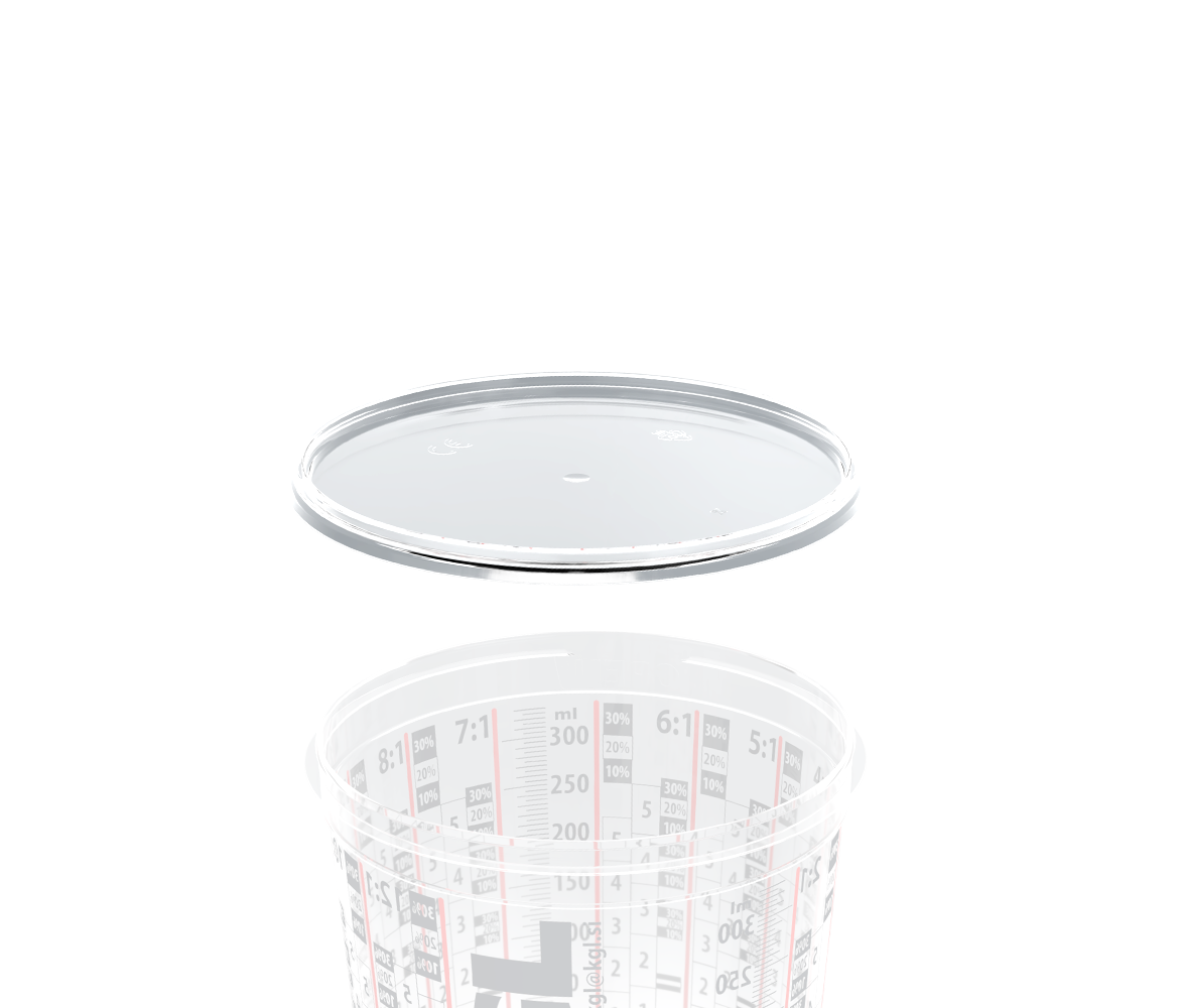 The mixing cup lid ensures secure closure and prevents spillage and contamination during mixing or storage of paints and clear coats. It is manufactured from durable polypropylene, resistant to solvents and chemicals, and helps extend the usability of prepared materials.